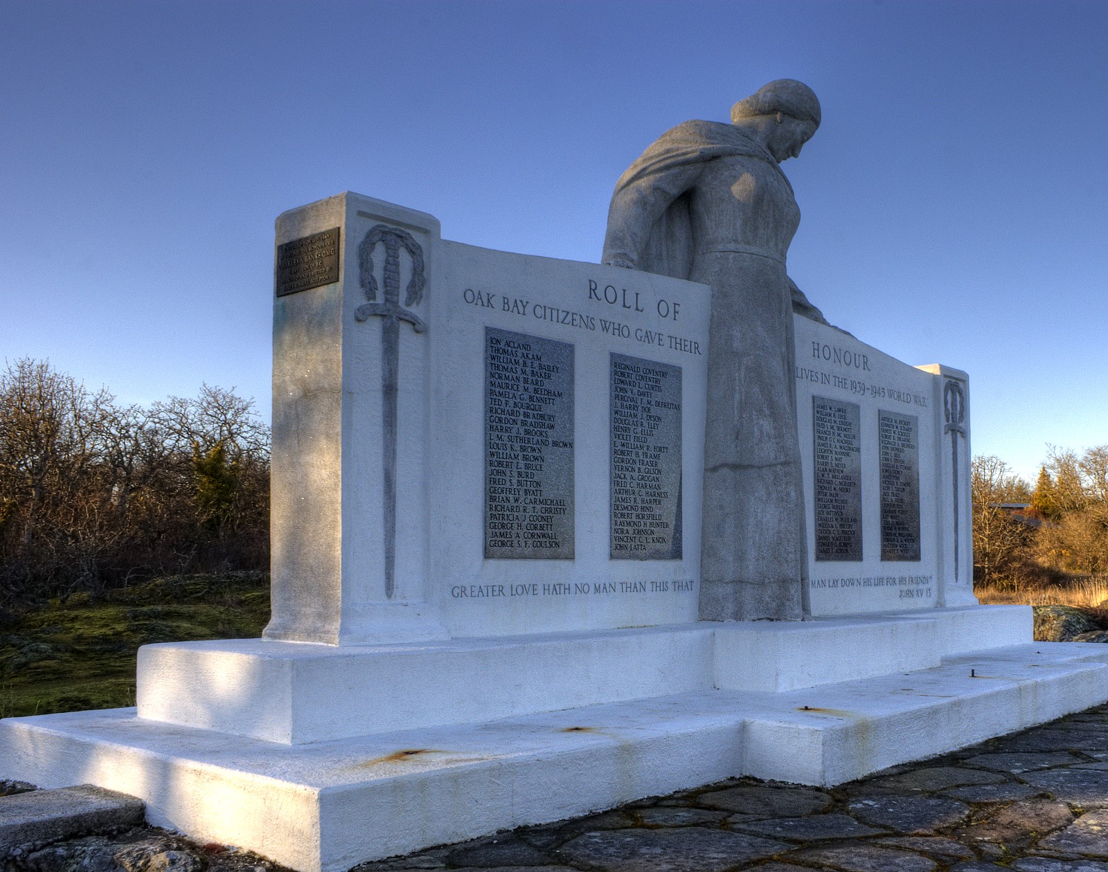 Just above Cattle Point is this memorial to Oak Bay residents who lost their lives during World War II. Generally these memorials depict armed soldiers and it is nice to see one that recognizes the grief and sorrows suffered by those who were left behind. It perhaps serves as a better reminder that we'd be wiser to remember the pain and suffering that war brings rather than glorify its heroic aspects.